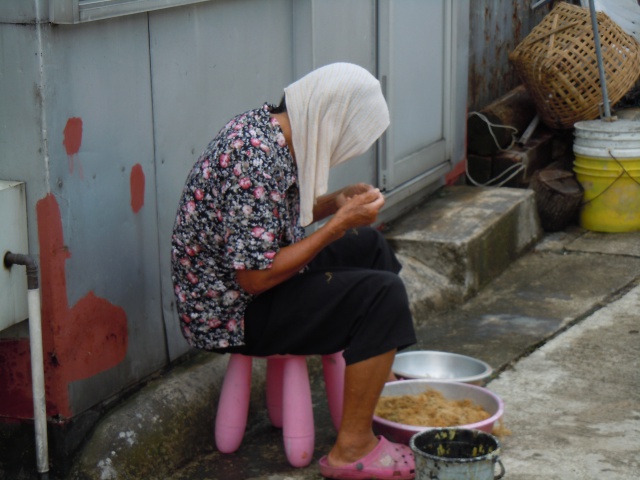 這張照片攝於大澳,反映現實和人生的思考,人們是否樂知天命!雖然各人各有所需,但她心底裡卻懷著一股我要活下去的精神,這是否意味著去貧窮化的方向?