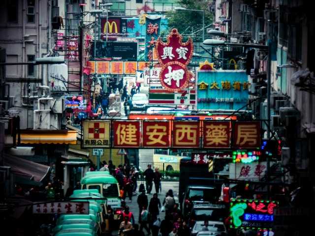 香港舊樓掛滿密集的招牌,路人川流不息,頭上的招牌,隨時成為“都市計時炸彈”。