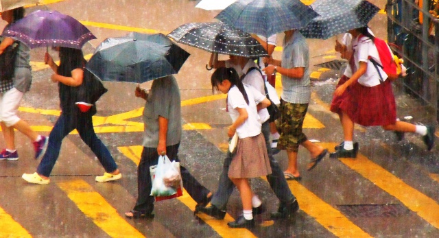 撐著傘、迎著雨、風欲動、肩並肩,急步行,形成獨特的感染力,營造出明快、歡樂、壓抑、低沉的情感,無一不是香港精神。