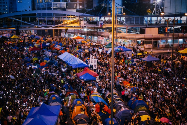 雨傘廣場內,人潮如湧,迫爆金鐘,只為團結香港!