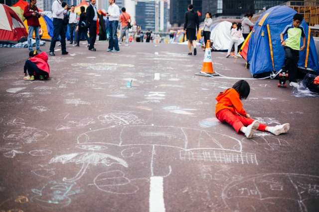 小朋友用粉筆在地上畫出他們的心聲,能否畫出香港的未來呢?