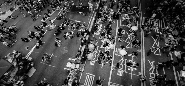 雨傘是一朵朵的花,不枯也不散。