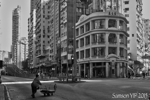 路經雷生春時, 看見一位途人推著手推車, 車上載了紙皮, 為的是三餐, 而出賣勞力 .