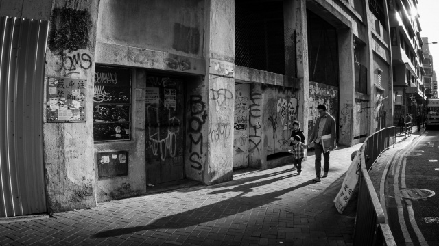 黃昏時 舊工廈 三父子