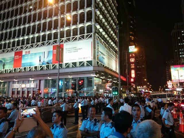 砵蘭街混戰的前一夜,警察在十字路口開始加強戒備,氣氛緊張。