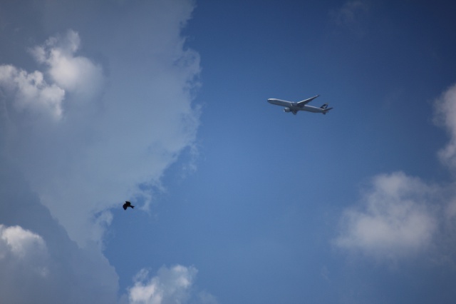 天晴,老鷹也出來和空中巨無覇翱翔ー起。