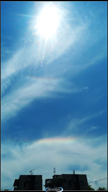 環天頂弧(CZA) - 內藍外紅色的環天頂弧 - 即是圖內的彩色環(像倒轉的彩虹)。