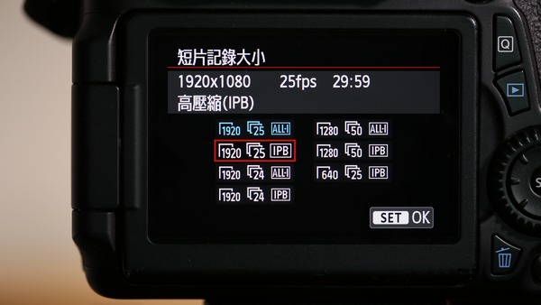 EOS 70D 畫面幀數設定選項