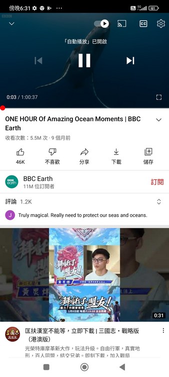 ▲連接 5G 網絡播放 YouTube 影片一小時,大約使用了 10% 電量