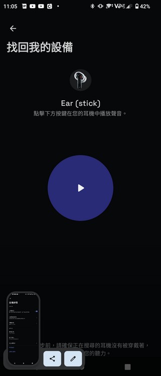 Nothing Ear stick 可連接 Nothing Ear App 使用,App 內可調整 EQ、設定入耳偵測功能 (即除下時自動暫停播放) 及尋找耳機功能。連接 Nothing Phone 1 使用進行遊戲時,更會自動進入低時延模式。