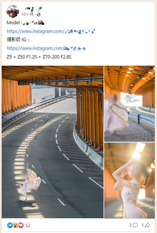 ▲有攝影師在 Facebook 群組分享自己在某打卡熱點拍攝的女像作品。
