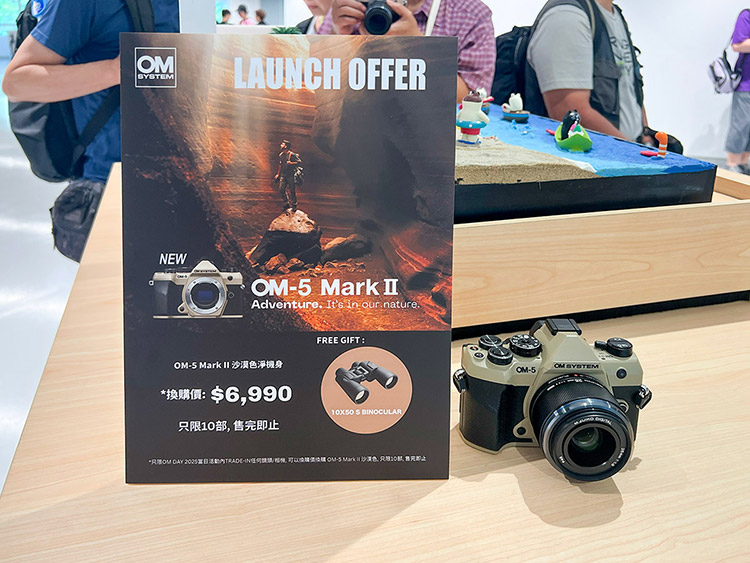 今年 6 月發表的 OM-5 Mark II 亦有展出,沙漠色淨機身換購價 HK$6,990,參加者可使用任何鏡頭或相機進行換購,但就只限 OM DAY 2025 當日,而且數量亦僅得 10 部。