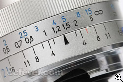 | 光圈可作 1/3 級調較。 | 鏡頭提供景深尺刻度。 |