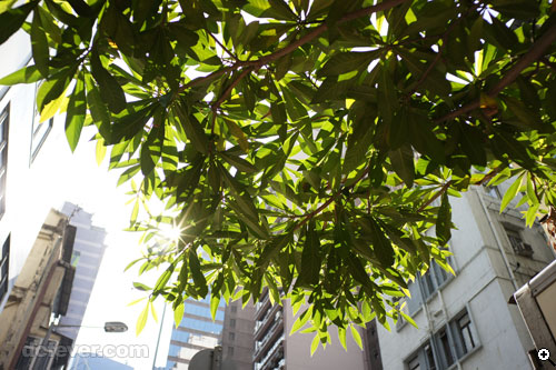 逆光拍攝,光圈略收至 f/4,不覺有眩光情況,但在葉的光位邊緣有少許紫邊出現。