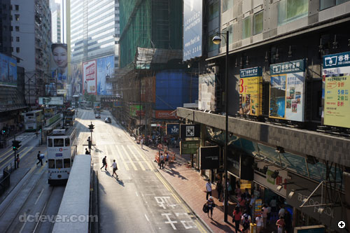 以 f/8 光圈逆光拍攝的街景,可以看到鏡頭的實力︰邊位成像結實、曝光不足的地方層次豐富、畫面變形極少。