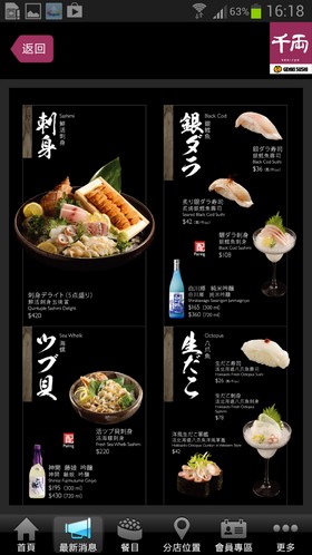千両 mobile app 除了有遙距取票功能外,用家在 app 內可查閱分店地址,並會以 Google Map 顯示更為一目了然。app 內同時可瀏覽千両的餐牌,更設有特選壽司項目,讓用家做定功課,知道最近有甚麼時令食材可以品嚐。 而 Samsung 手機用戶現在更有獨家優惠,唔使諗,先到 Samsung Apps 下載,咪走寶!