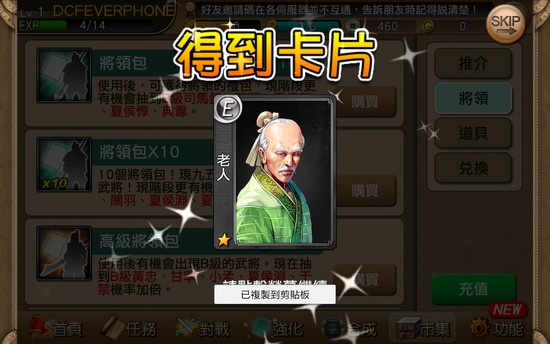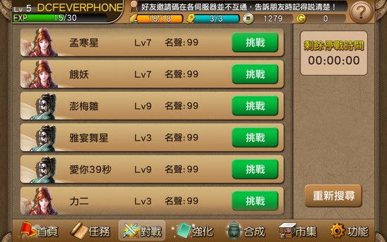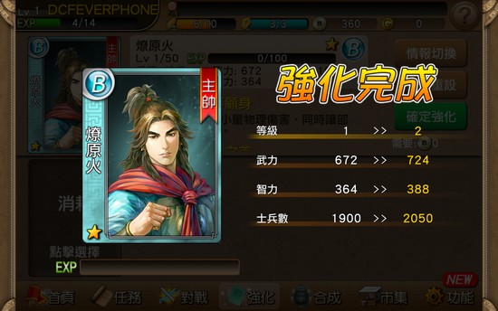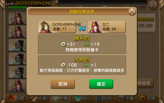 另外玩家還可與其他玩家對戰,獲得更多金錢及經驗值,建議大家可選擇等級較低的玩家進行戰鬥,從而輕鬆勝出。不過與其他玩家戰鬥需要使用軍令,軍令亦可透過時間等待及使用 G 幣獲得。