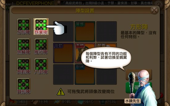 玩家可設置不同戰陣進行戰鬥