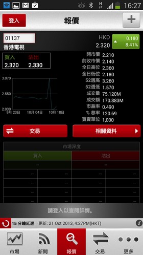 近日電視台牌照已知花落誰家,相信留意股市的用家,一定會關心相關公司的股價波動。想無時無刻緊貼股市變動情況,就要使用SHKF eMO!,它的市場消息不斷更新,使用家不會錯過入市的機會。Samsung apps 用戶只要於推廣期內下載 SHKF eMO!,並成功於「鴻財網」開設證券帳戶,即可專享港股買賣佣金回贈高達3,000港元*。