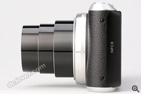 數碼相機大玩復古已是潮流,就連高倍便攝的 WB350F 亦不例外,機面用上自家手機如 Galaxy Note 3 的方式,於機面壓上仿皮紋理,加上機頂機底採用金屬感的處理,外觀上可謂一點亦不平價。以只有 216g 的重量,WB350F 上手第一感覺可謂有如 DC,不計鏡頭輕微突出部份的話,輕巧程度其實跟口袋機相距不大。開機後相機頗快已進入拍攝狀態,當中 21 倍鏡頭會分為三節伸出,並提供 23-483mm 的等效。