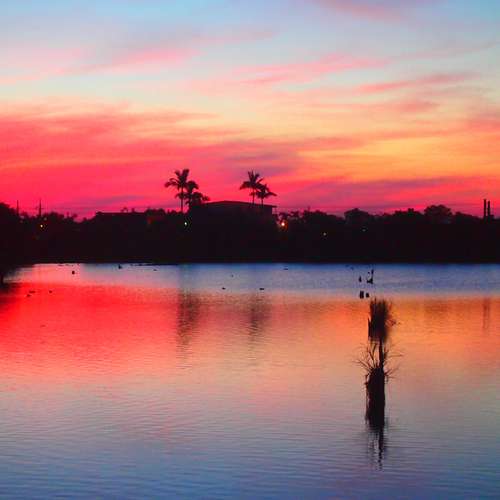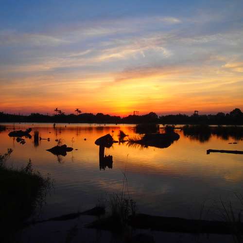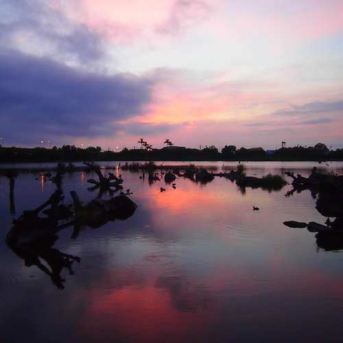 貯木池。日出炫彩