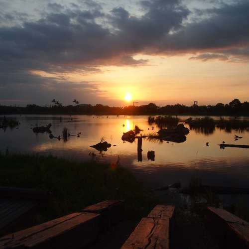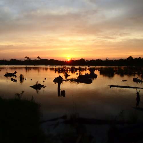 貯木池。日出風景