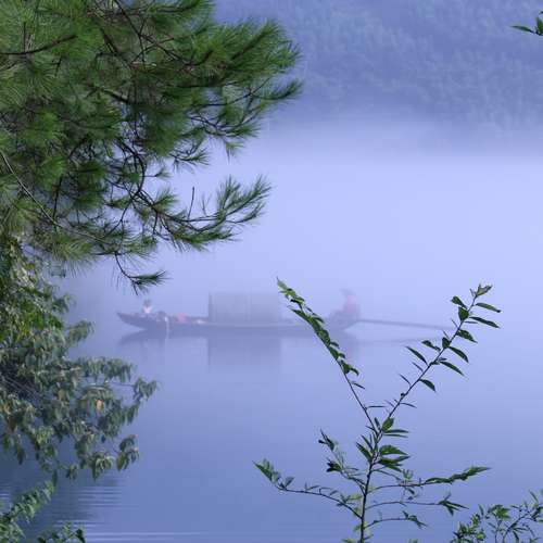 霧中小船