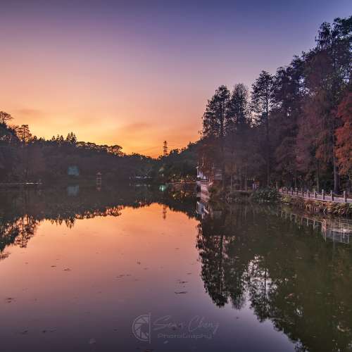 落羽松日落