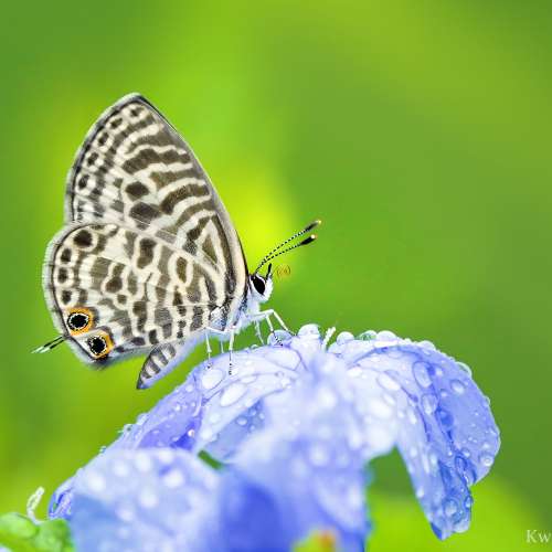 細灰蝶..雨中的藍雪花