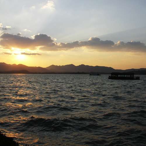 夕陽西下湖景