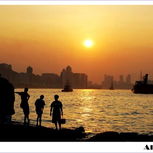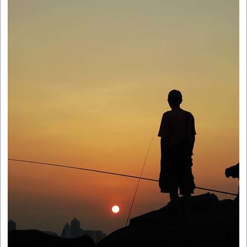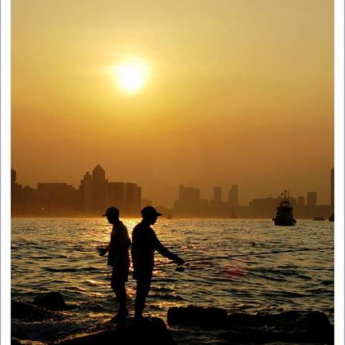 夕陽下你左我右 釣魚樂