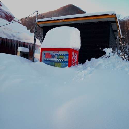 北海道 - 帶雪帽的可口可樂自動販賣機
