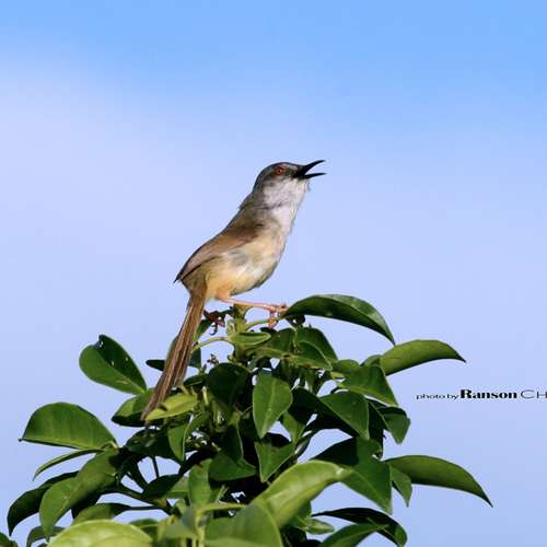 藍天中的褐頭鷦鶯