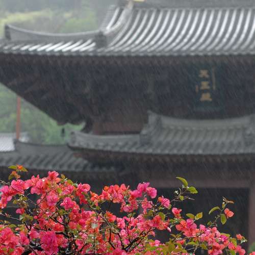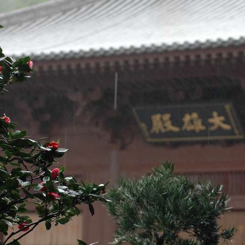雨中大雄殿