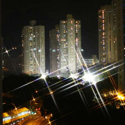屋村夜景加十字星