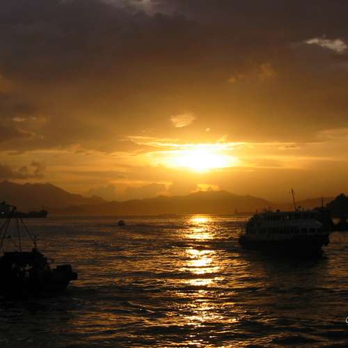 日落+魚船