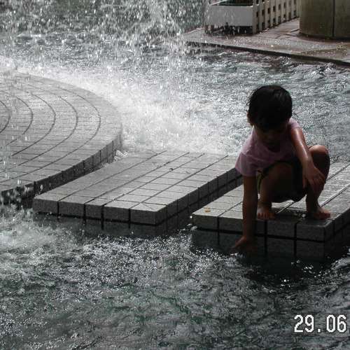 People in fountain