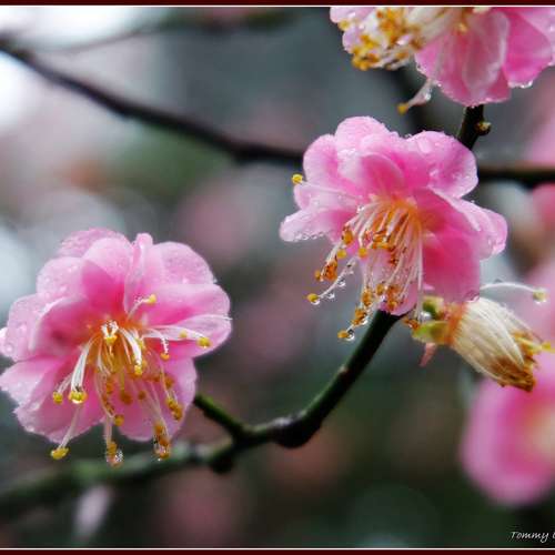 霏霏細雨沾紅梅