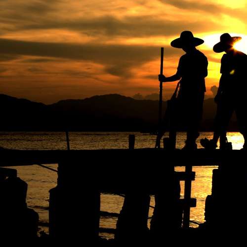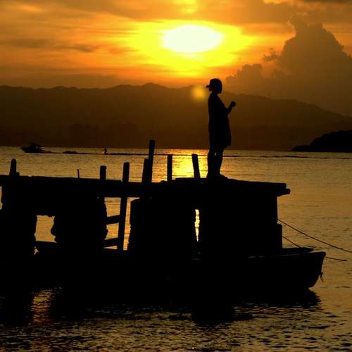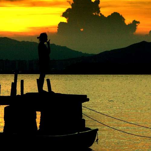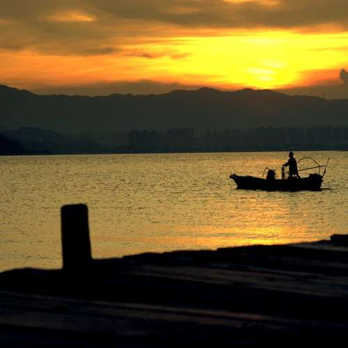 夕陽下的船
