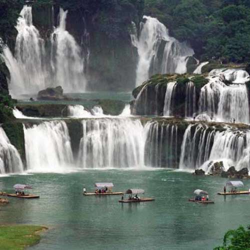 瀑布下泛舟
