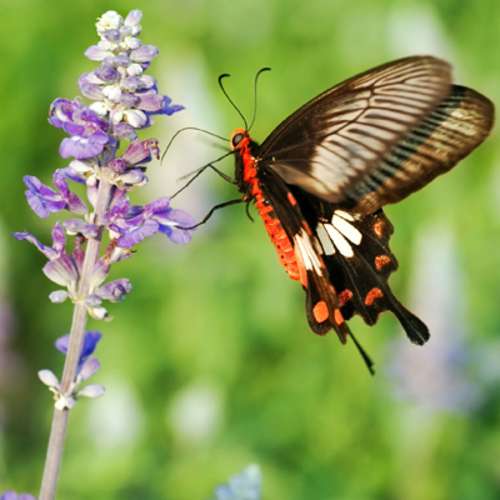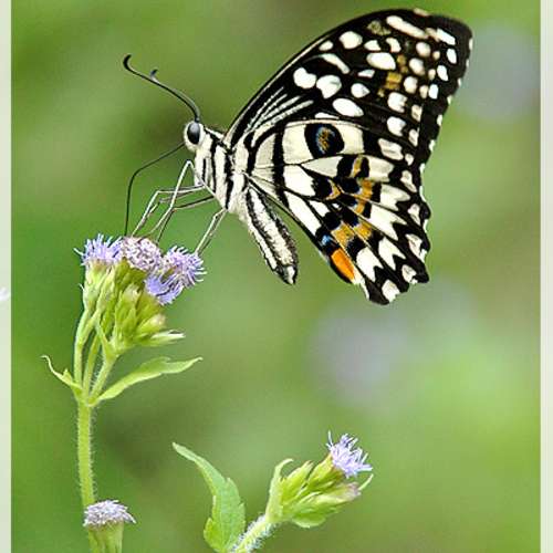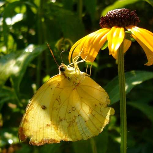 在品花的黃粉蝶