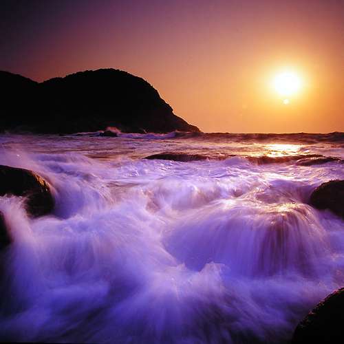 日出、激浪