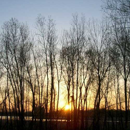 日落樹林中