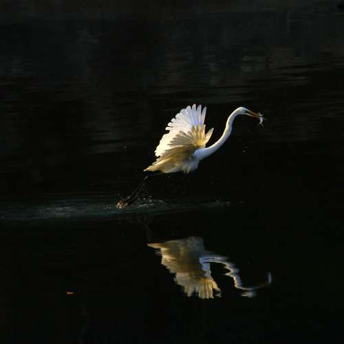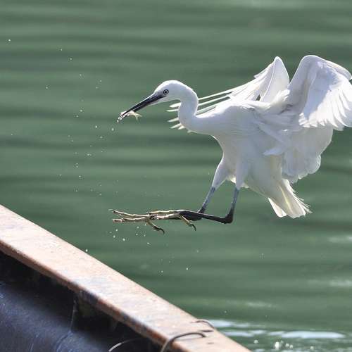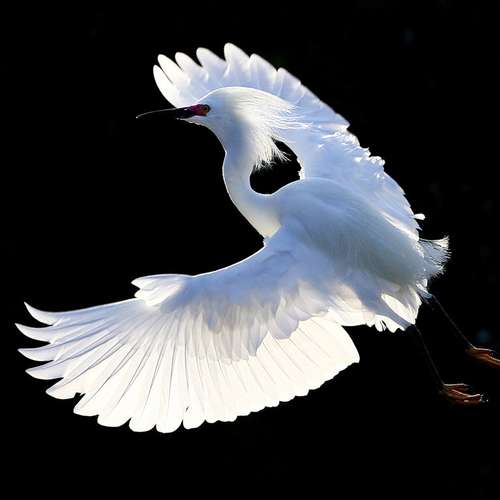 Flying Snowy Egret