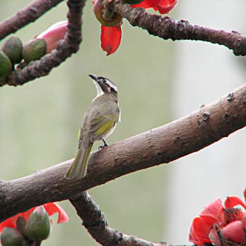 鳥入花叢中