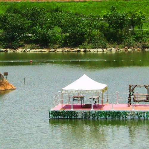 在水中央