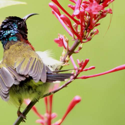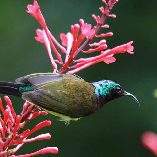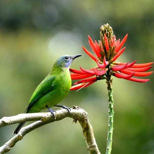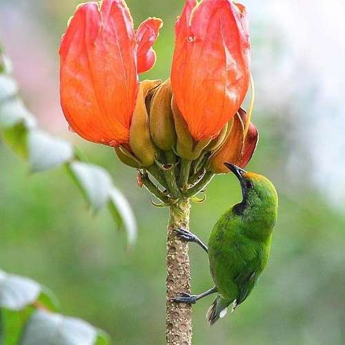 紅花盛放,綠鳥思鄉