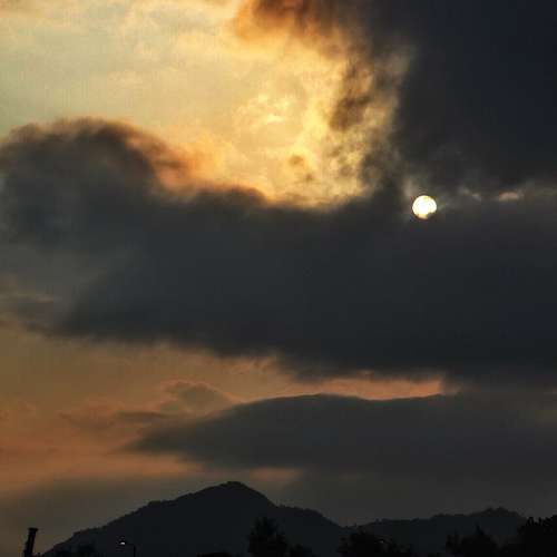 日落。