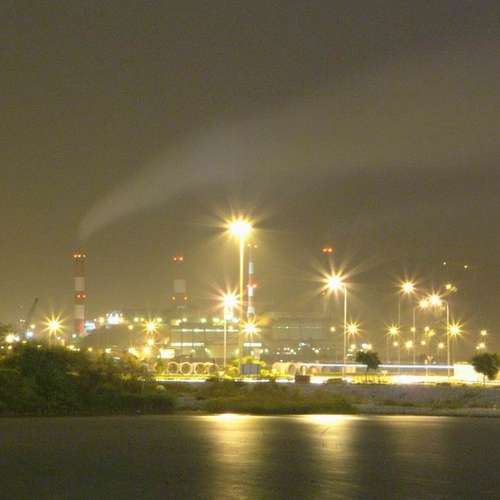 煙、燈、水影