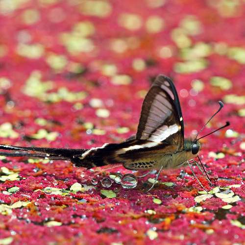 翠藍眼蛺蝶吸水~~